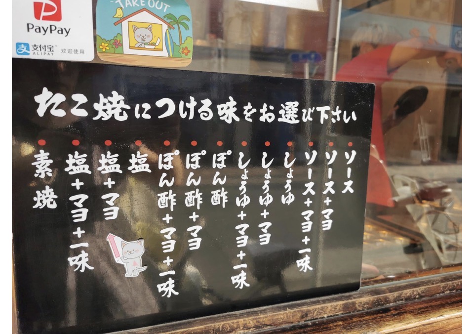メニューのたこ焼きは味が選べて、どの味にしようか迷っちゃいます。