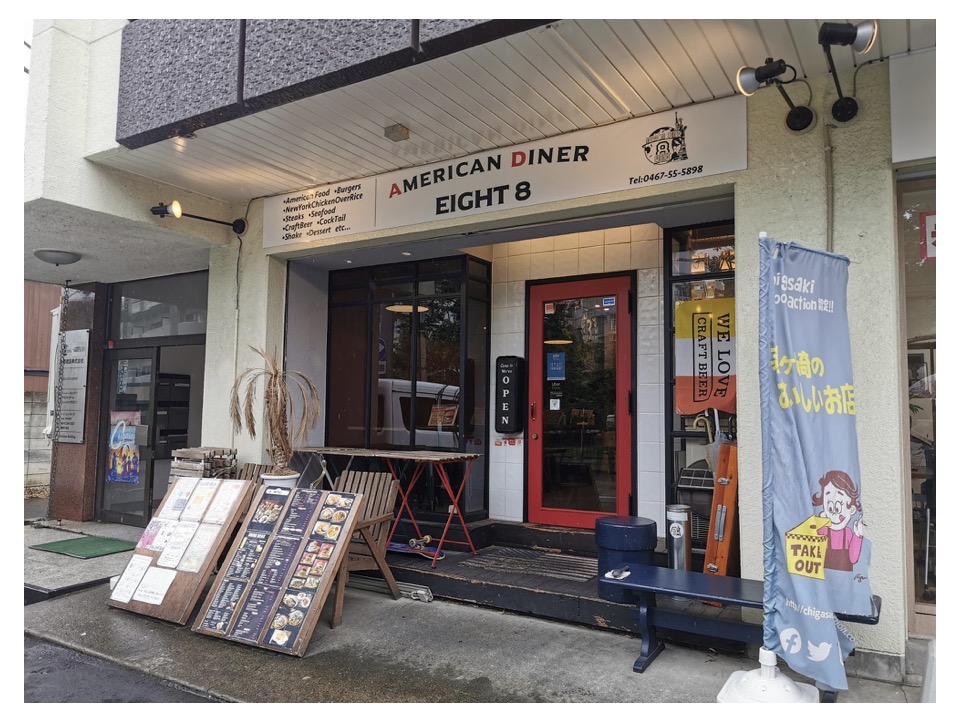 茅ヶ崎の南口から徒歩4分ほどにある、American Diner Eight!