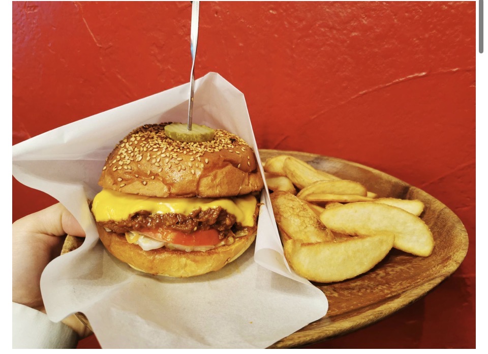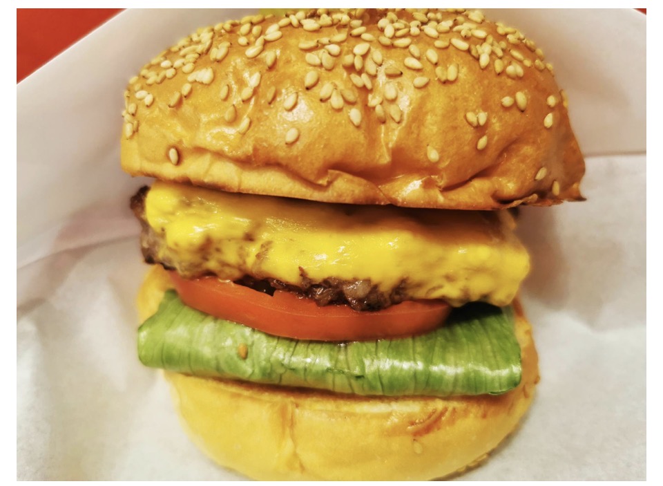 ボリュームがたっぷりのチーズハンバーガーは、シャッキシャキのレタスとトマト、和牛のお肉がジューシーでも、うたまらないおいしさ!