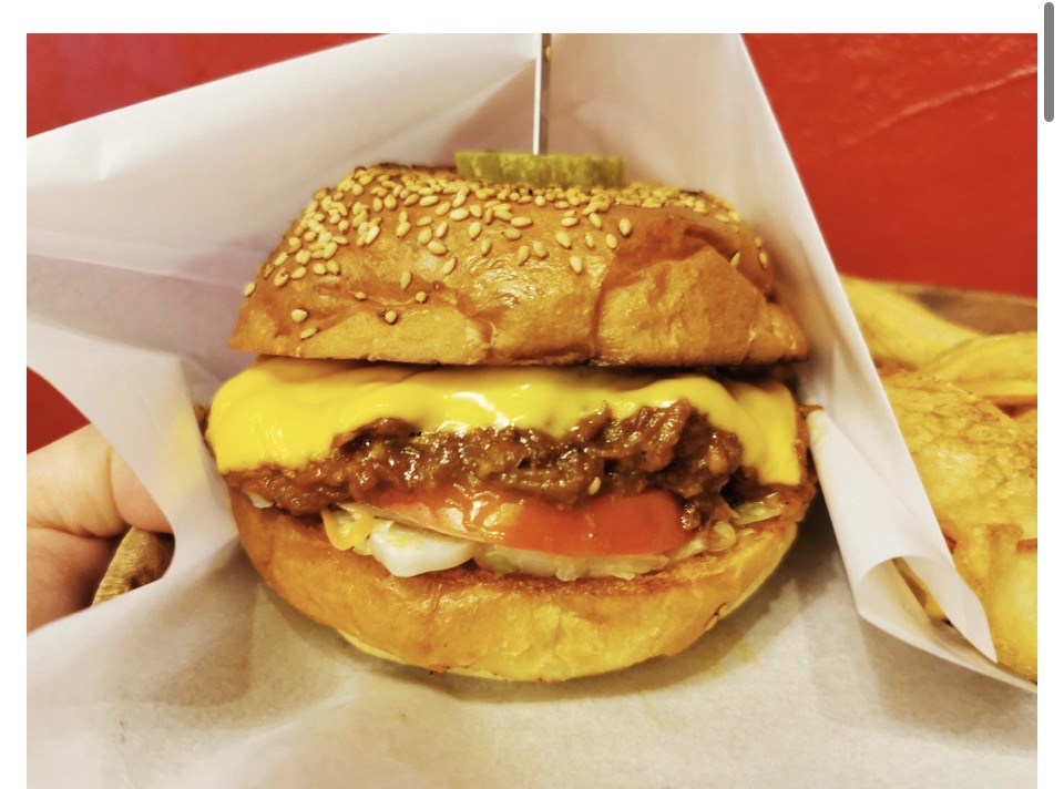 私たちの注文をようやく決め、今回はハンバーガー+チーズと、プルポークチーズサンドにしました。