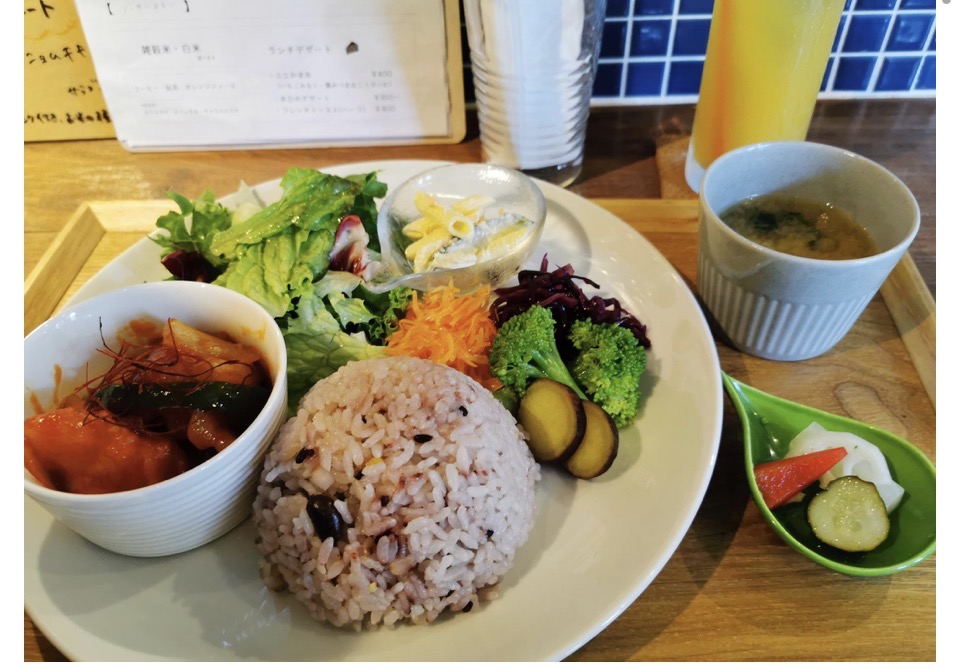 お味噌汁と漬物もつき、和食のような洋食のような、お野菜もたっぷり食べられ大満足ですよ。