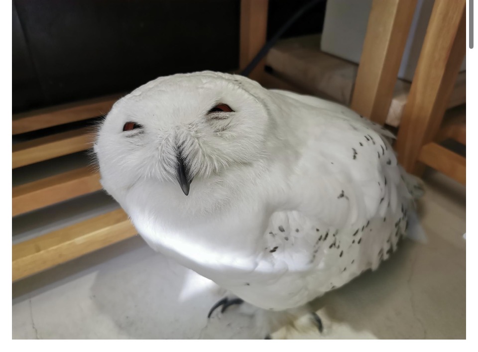 このふくろうさんは、ハリー・ポッターに登場するふくろうと同じシロフクロウのスノーちゃんです。