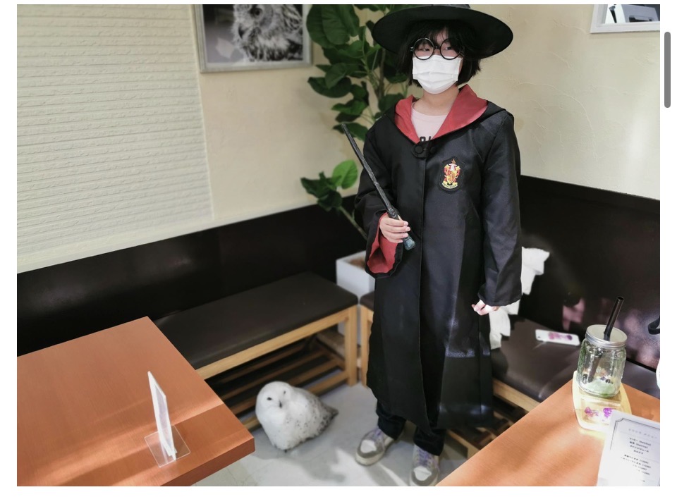 湘南ふくろうギャラリーさんでは、ハリー・ポッターの格好をしてお写真をとることもできます。