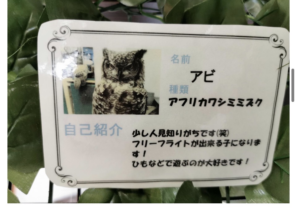 さらに、現在ふくろうを飼われている方が旅行に行きたい時は、お預かりもしているそうですよ。