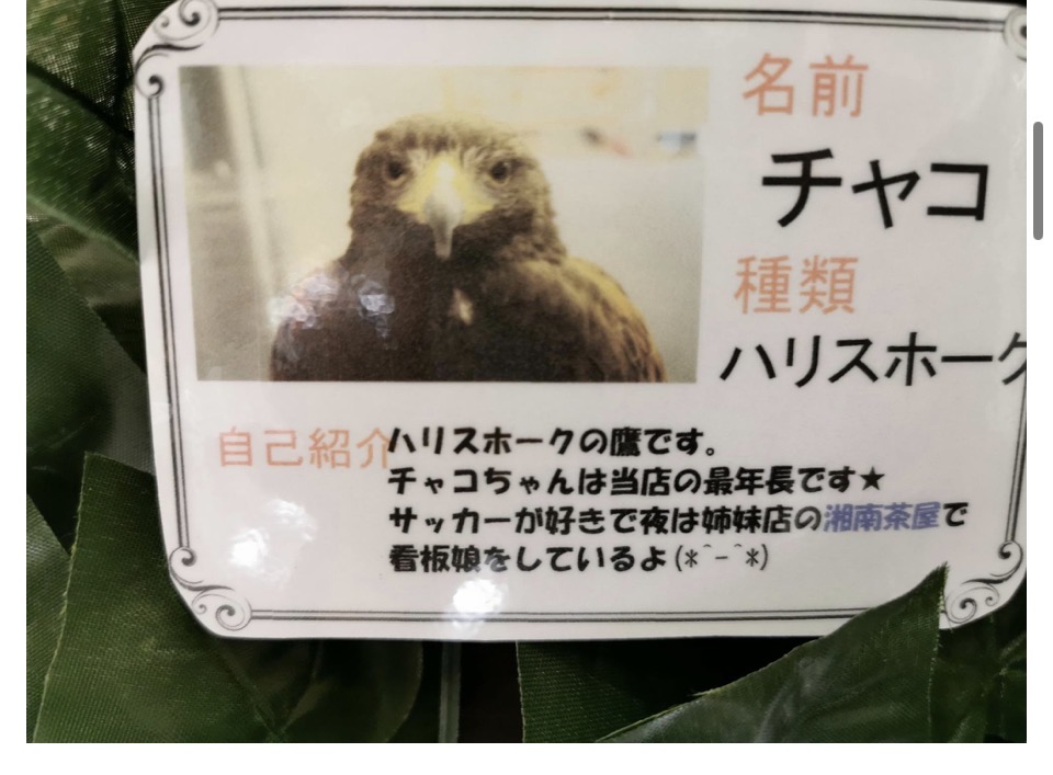 最後に、鷹のチャコちゃんは湘南ふくろうギャラリーさんの中では一番の最年長さんです。