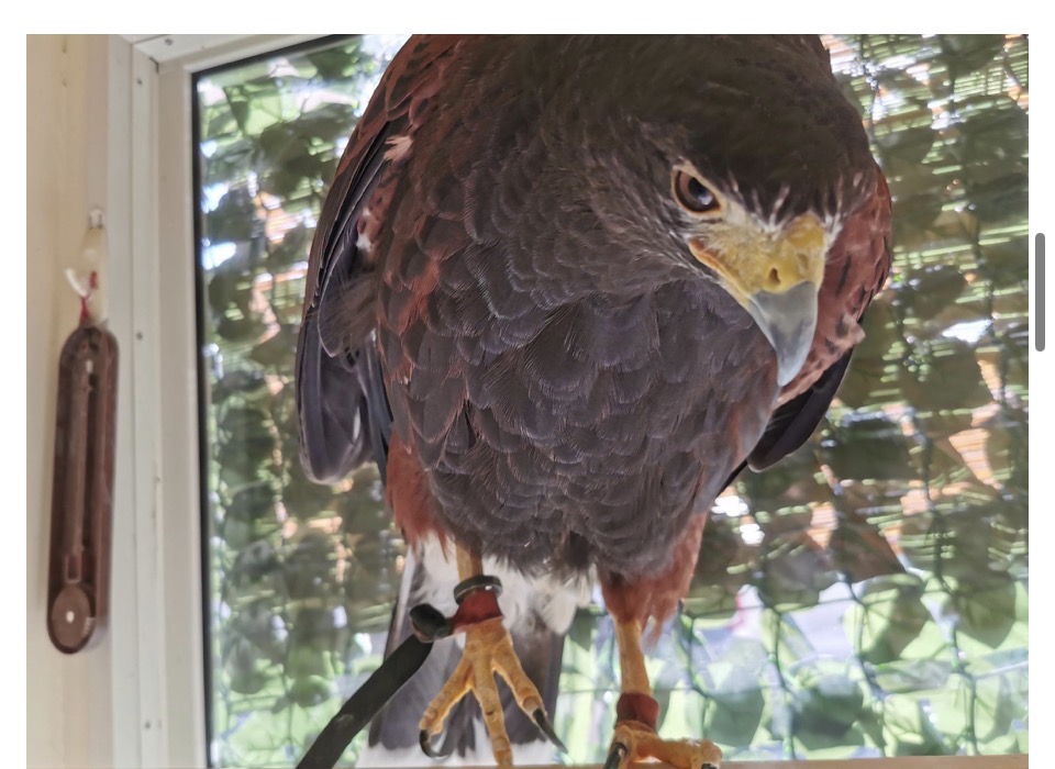 よく、テレビなどで餌やりをして羽ばたいているのが、ハリスホークの鷹です。