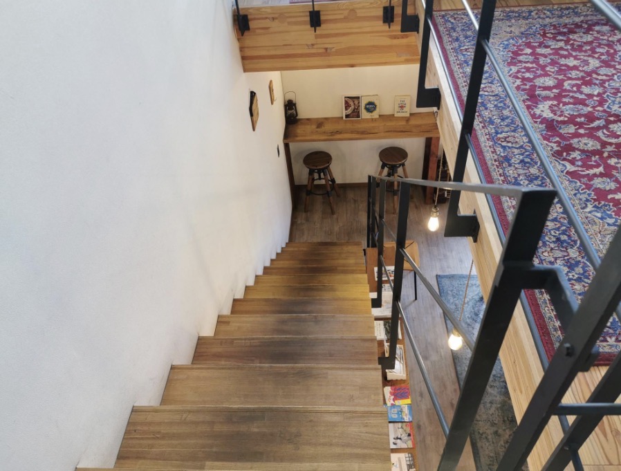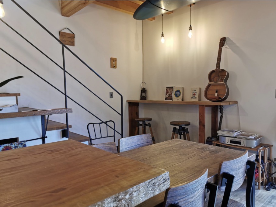 1階は注文カウンターとキッチンがあり、奥には6席ほどのテーブル席や大テーブルが配置されていました。