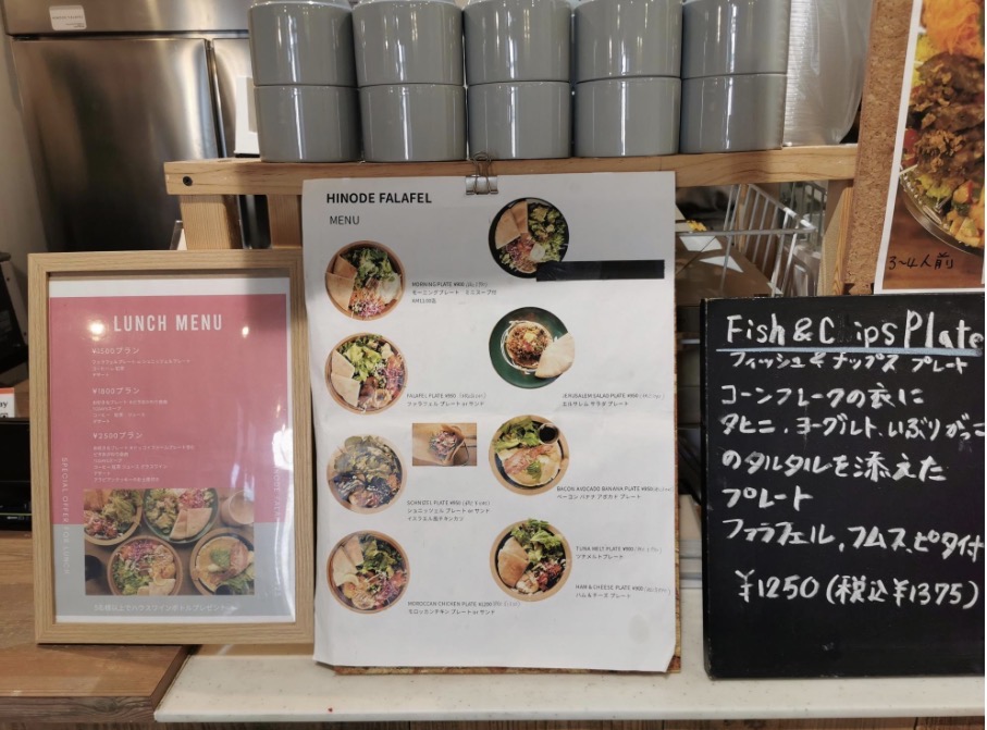 HINODE FALAFELは豊富なメニューを黒板から選ぶ楽しさがある