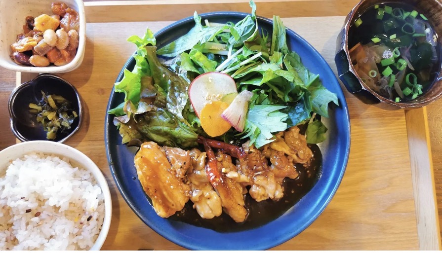 定食ランチには、ミニサラダ・小鉢・十六穀米・お椀・ドリンクまでついてます!(価格は取材時2024年のものです)