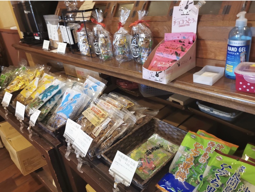 店内には、沖縄の黒糖・お菓子があり購入することが出来ますよ!