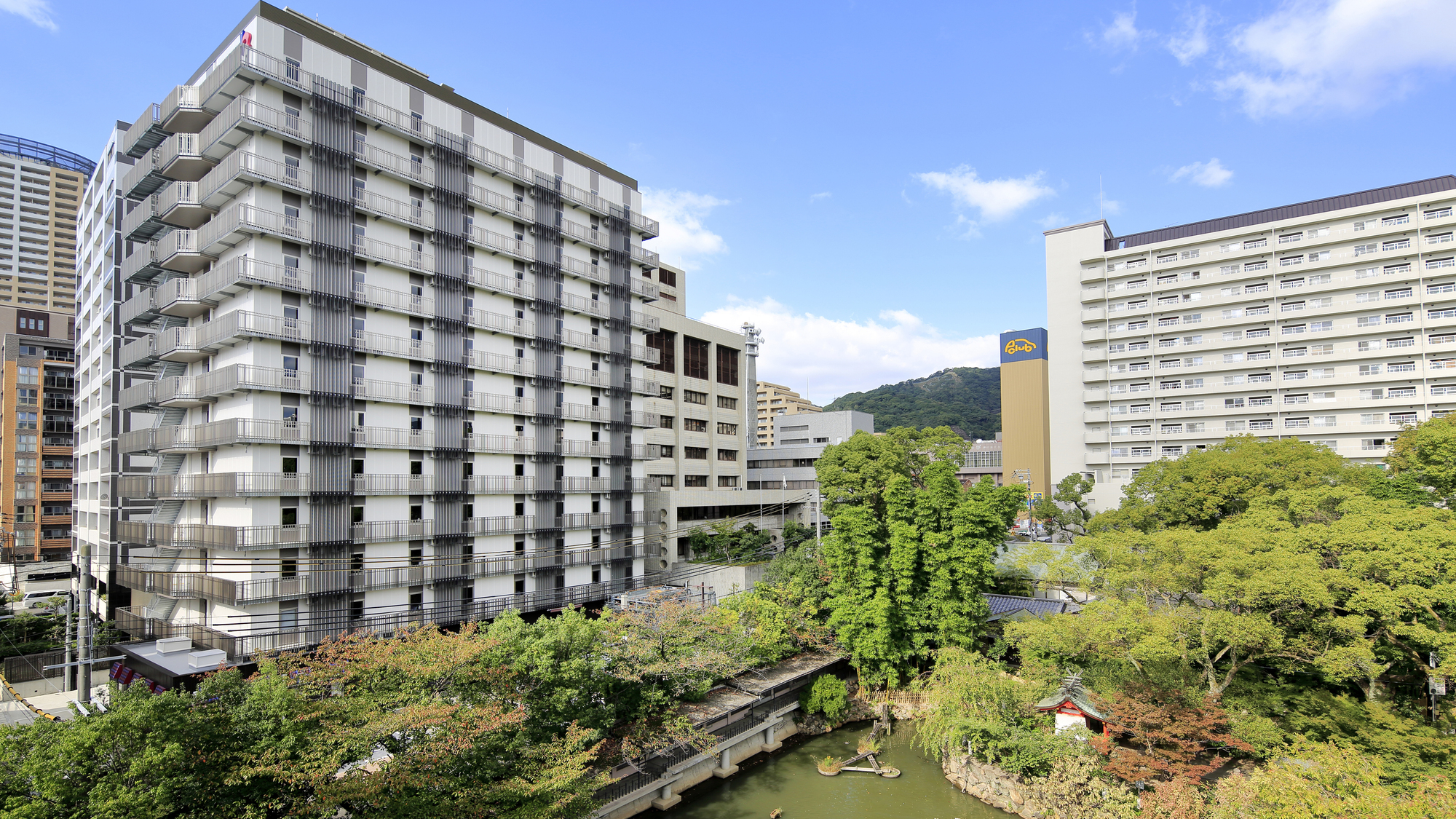ホテルに看板はありませんので、建物の植栽を目印にしてください。