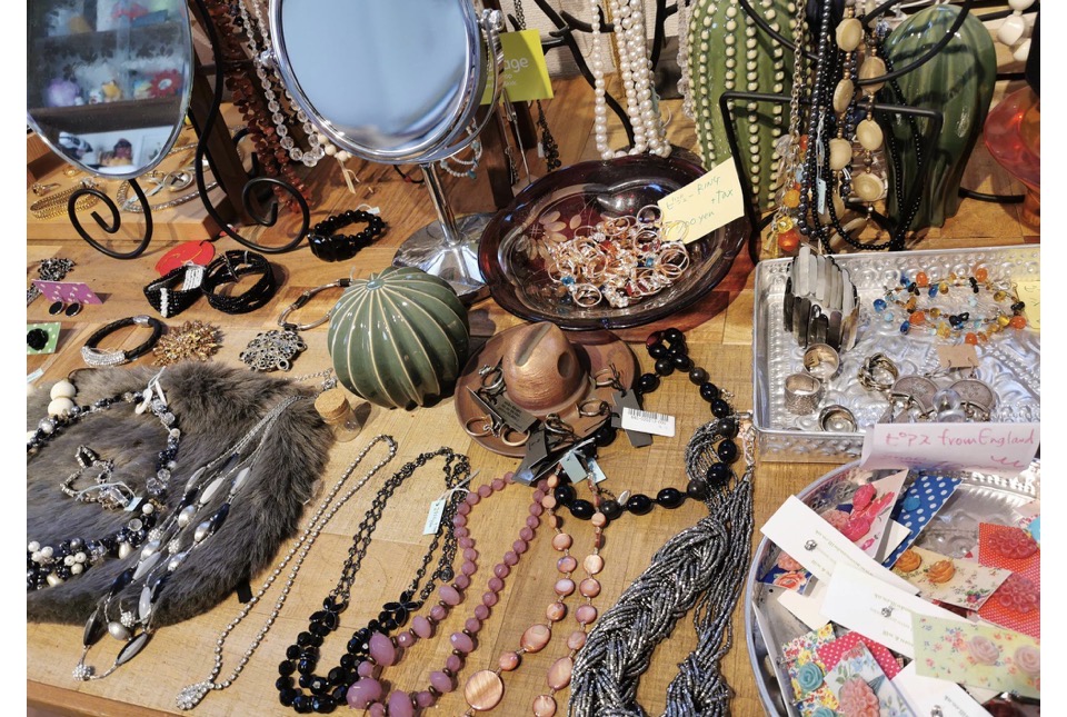 店内には、アンティークなアクセサリーや雑貨も販売されています。