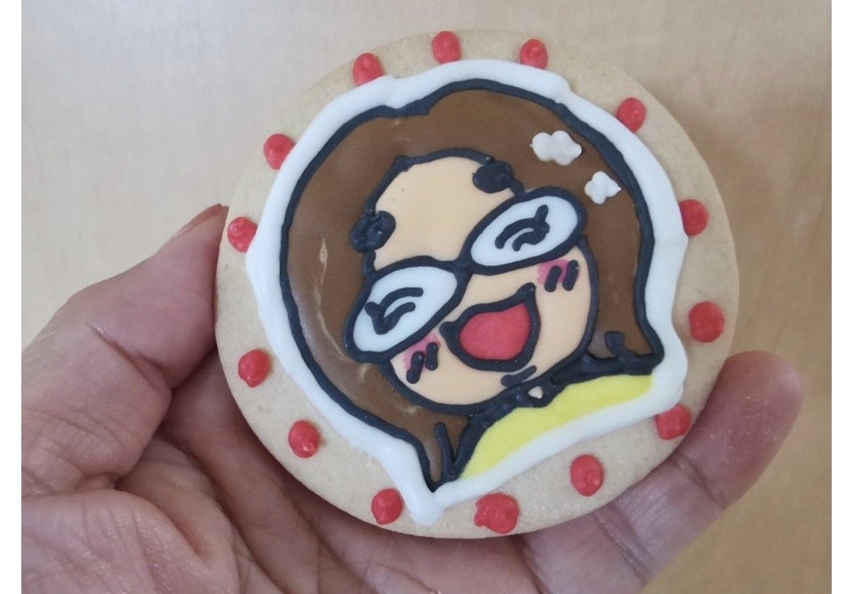 私のアイコンとそっくりでしょ。アイシングクッキーで、1個300円~500円でこの大きさのクッキーを作っていただけます。