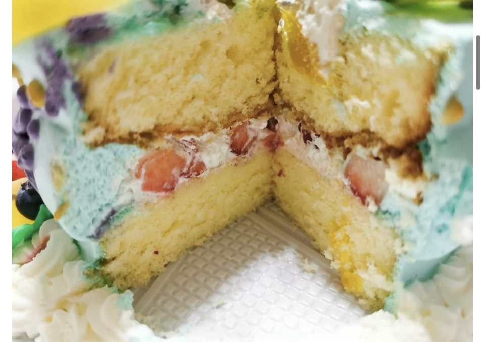 ケーキをカットすると、中には苺もたっぷりと入っていて、甘さ控えめのクリームで美味しい!