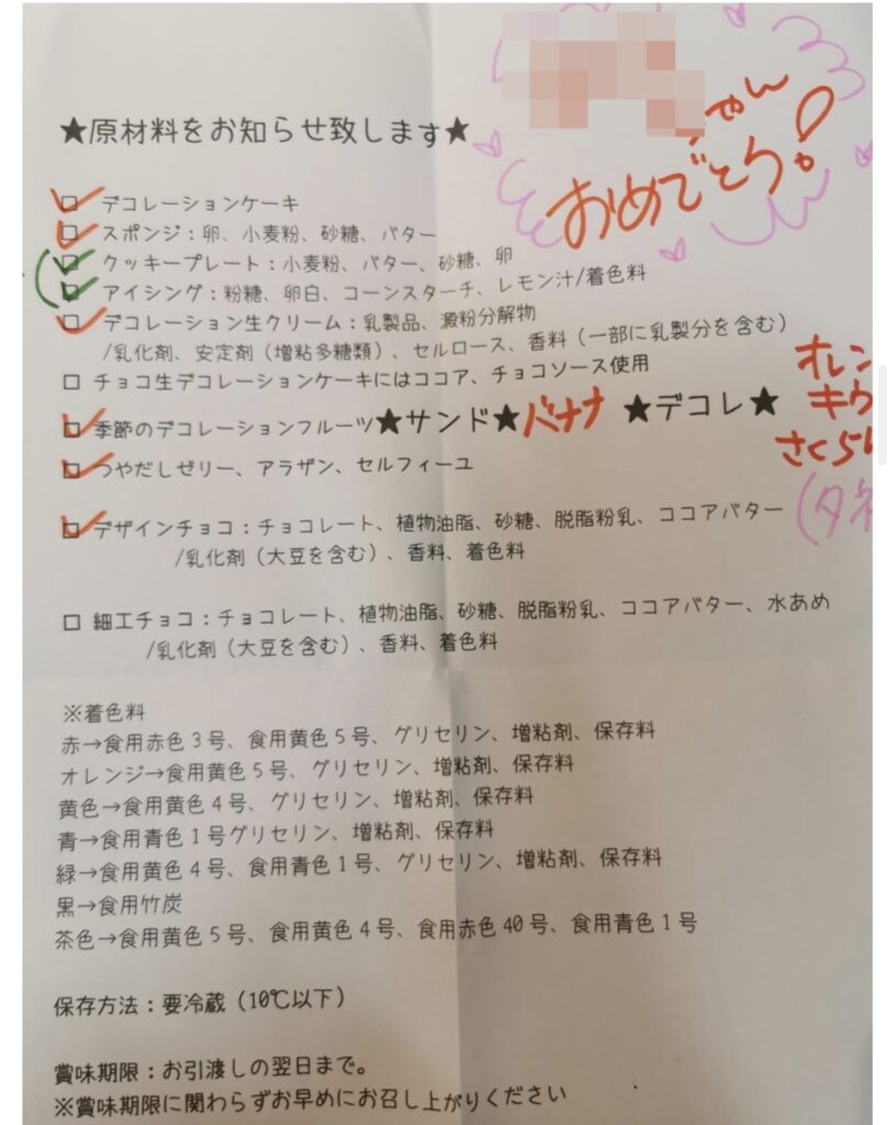 ケーキに使われた材料もきちんと教えてくれるのは、嬉しいですよね!