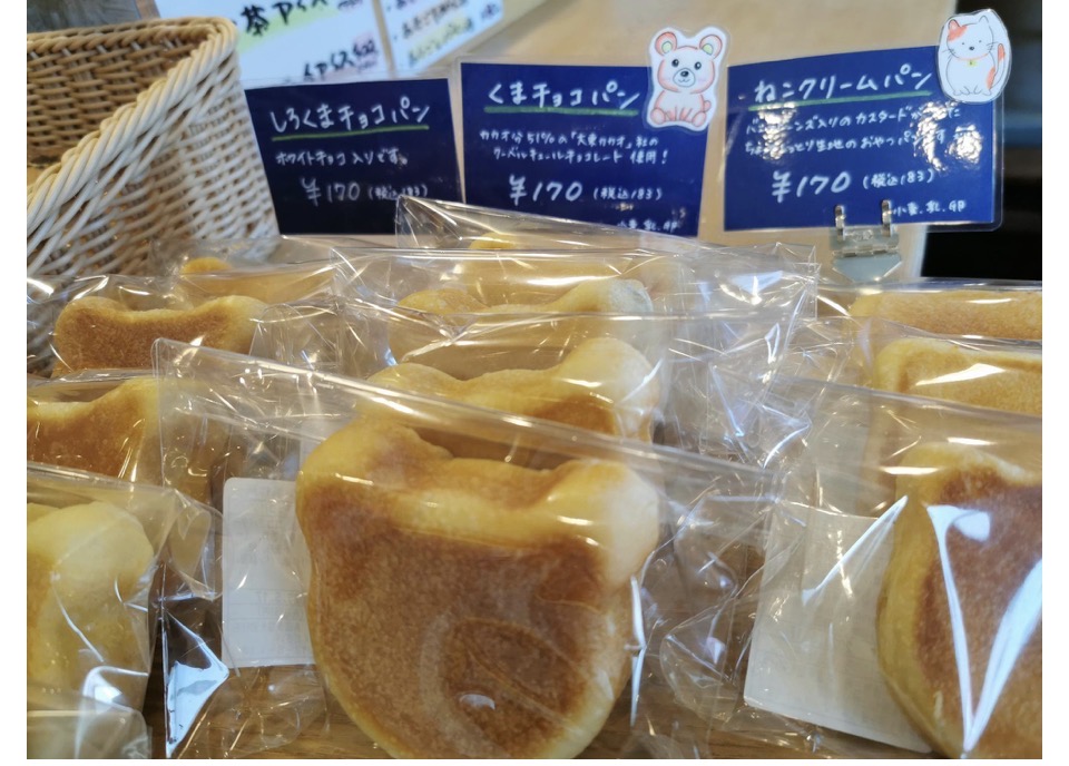 なんとも可愛らしい、くまチョコパン・しろくまチョコパンは見た目は同じですが、中のチョコが違います。