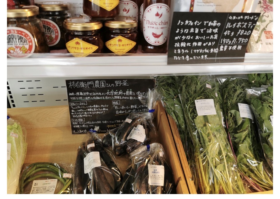 店内は有機栽培や減農薬農法など、体にやさしい素材の商品が販売されています。