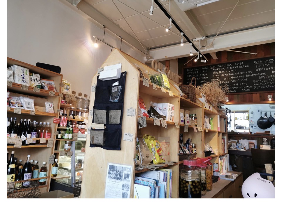 店内は、無添加調味料、オーガニックお菓子、エコ雑貨などもあり、お料理を注文したらお店をうろうろと見るのも、楽しいんですよ。
