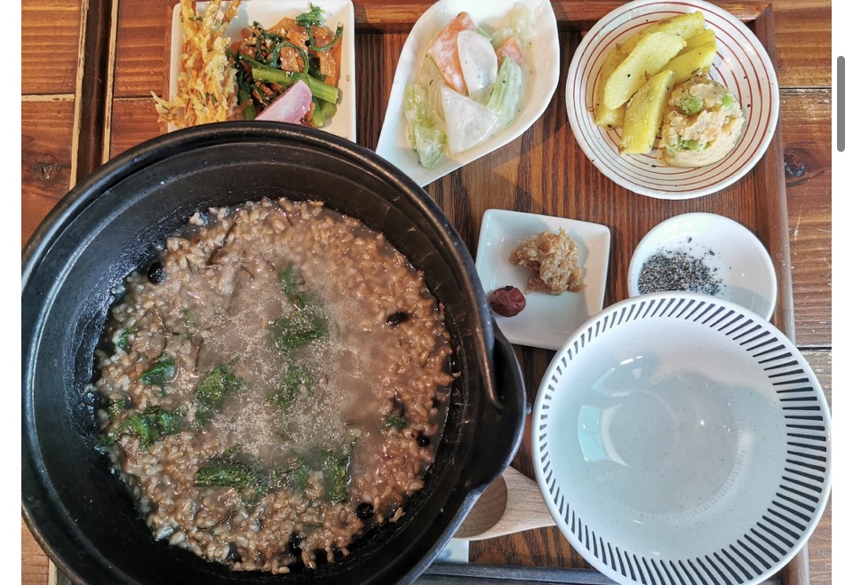 今回は家族でお邪魔をしたので、ちゃんとご飯と玄米おにぎりセット、玄米粥をいただきました。