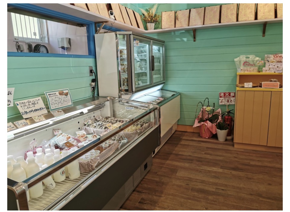 店内は茅ヶ崎の牧場からしぼりたての生乳を直送した、新鮮な牛乳やモッツァレラチーズ、ホエイブラウンパウンドケーキやプリンなど、ここでしか買えない商品がズラリ!