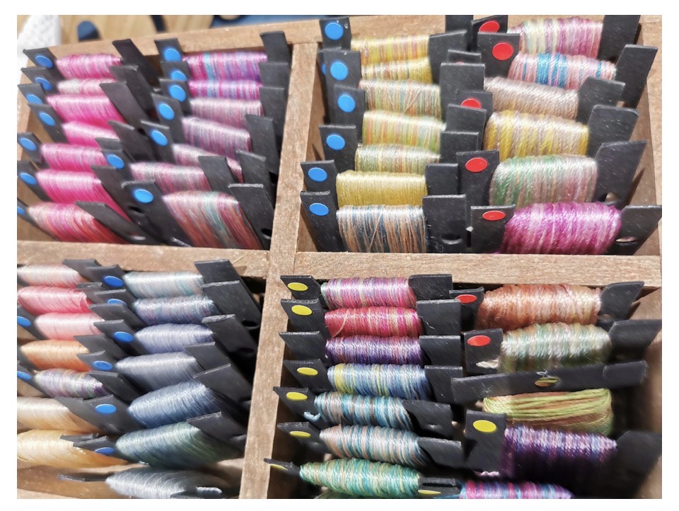 布から染めそれをほどいて糸にしたシルク糸、繊細でどれも同じ色合いはだせない糸は、ハンドメイド作家さんに大人気の糸です。