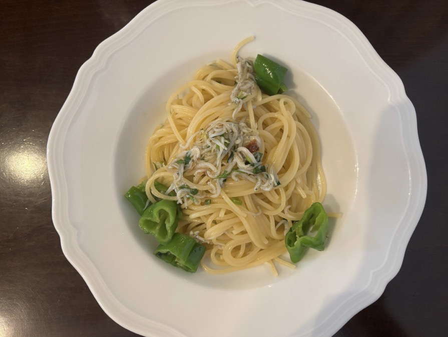 しらすの塩気と旨味が、パスタ全体に行き渡っていて、一体感があり、万願寺の香りとほのかな苦みが全体を引き締めて、罪悪感のないパスタでした!