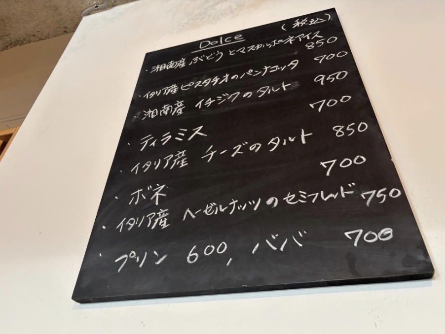 今回はAランチだったので、デザートはついていませんでしたが、帰り際に見た黒板の「Dolce(デザート)」の文字たちが…とにかく気になる!