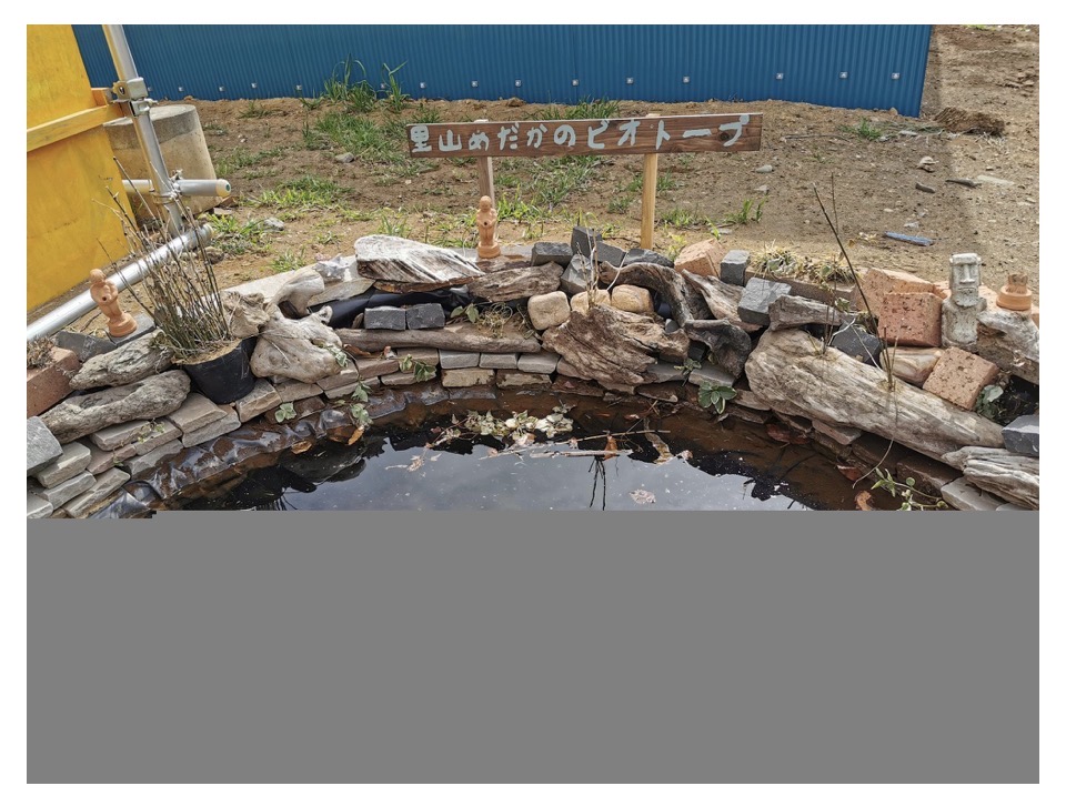 中に入る前に、なんだか横に里山めだかのビオトープが!
