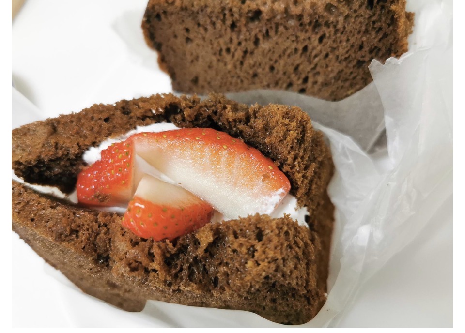 いちごの入ったココアシフォンケーキは、ふわふわのシフォンの中にクリームと甘酸っぱい苺がマッチして、1つペロッと食べれられますよ!!