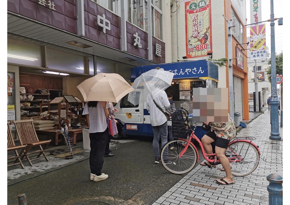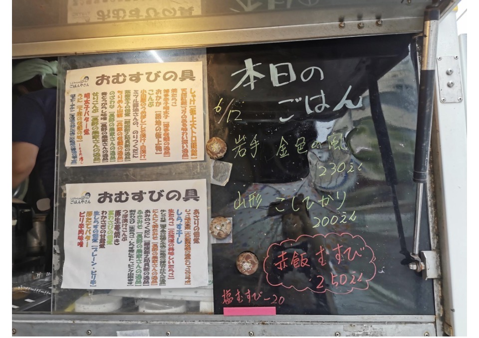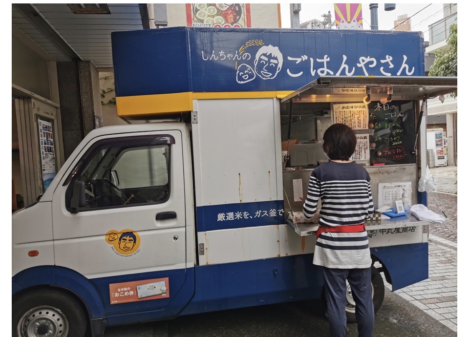 エメロードにある、中丸屋米店が曜日限定(毎週月曜日、木曜日、土曜日予定)のキッチンカーで「しんちゃんのごはんやさん」でおむすびを販売しています。