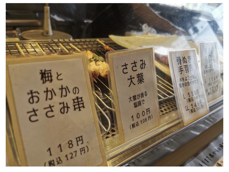 店内に入ると、焼き鳥がずらりと並んでいます。