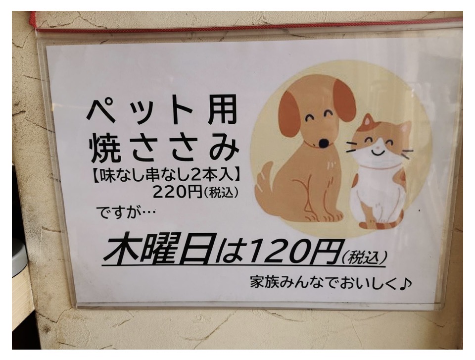 なんと、毎週木曜日はペット用焼ささみが半額です。