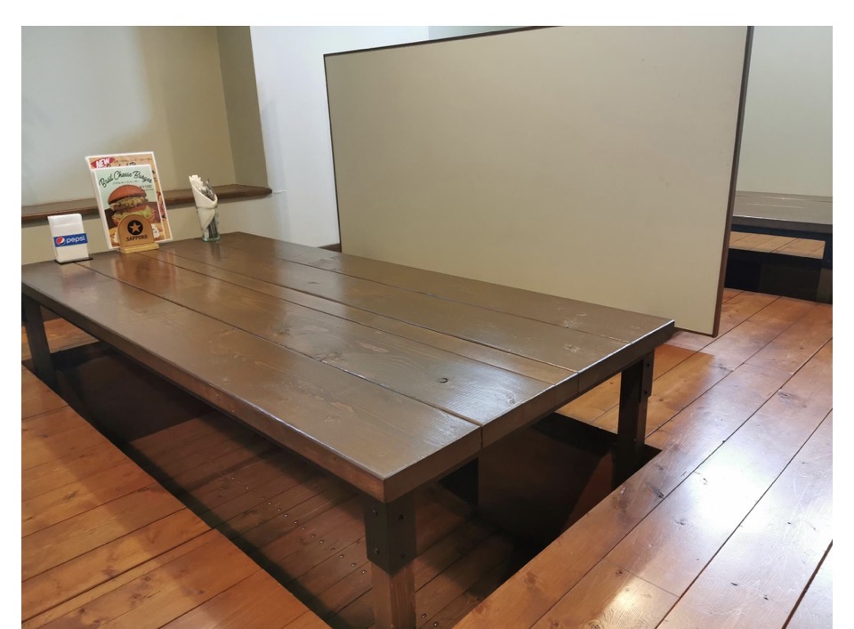 中に入ると、お座敷もある少し変わったハンバーガー店ですが、小さな子供がいるご家族にはありがたいですよね。