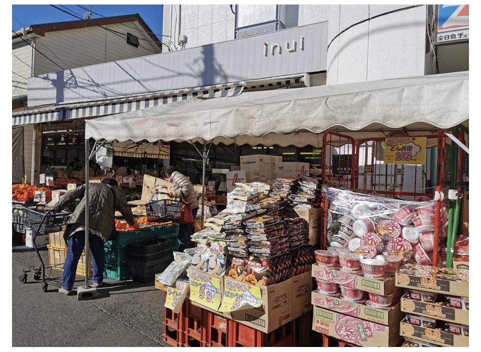 こんなところに、スーパーがあるとは!!と、初めての人だと感じますが、実はこのスーパーは1904年の創業の地元人に親しまれているスーパーイヌヰさんです。