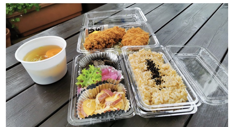テイクアウトのお弁当は、特製おみそ汁は別売りです。