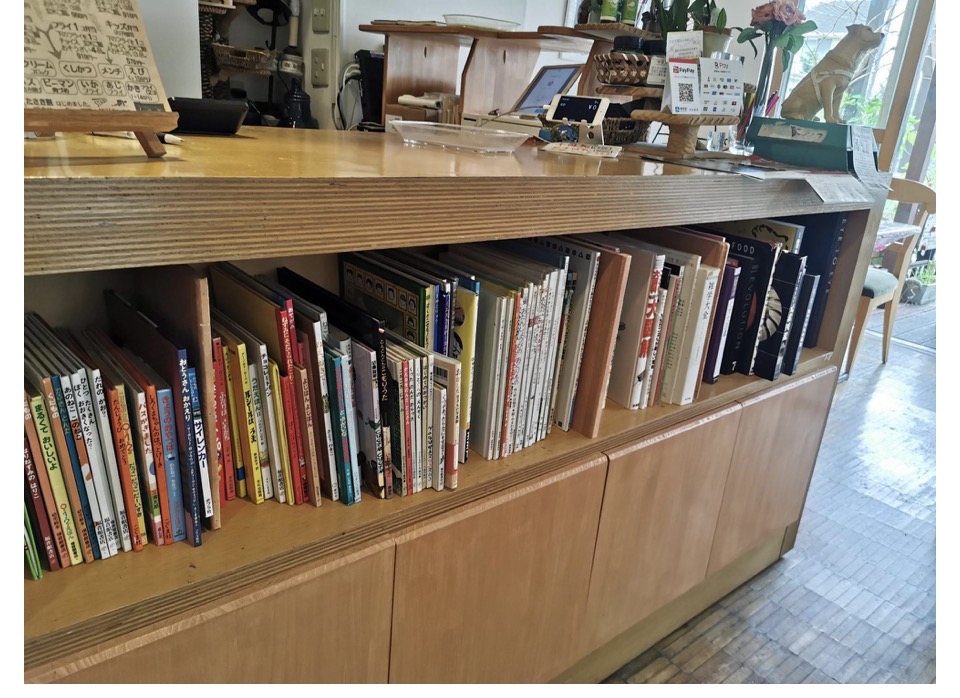 お子さんにお料理が届くまでの時間が飽きないように、絵本も店内にはありますよ。