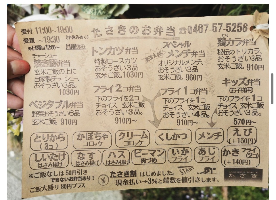 たさきのお弁当は、電話予約できます。