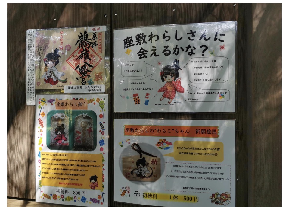 座敷わらしは、心清らかな方に寄り添い幸せを運んでくれると伝えられており、鶴嶺八幡宮では座敷わらしのお守りや、御朱印もあります。