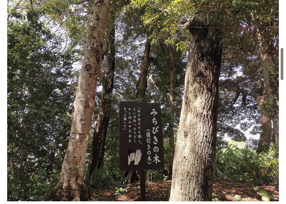 本殿奥には、みちびきの木や夫婦楠となんとも不思議な樹木もありますよ。