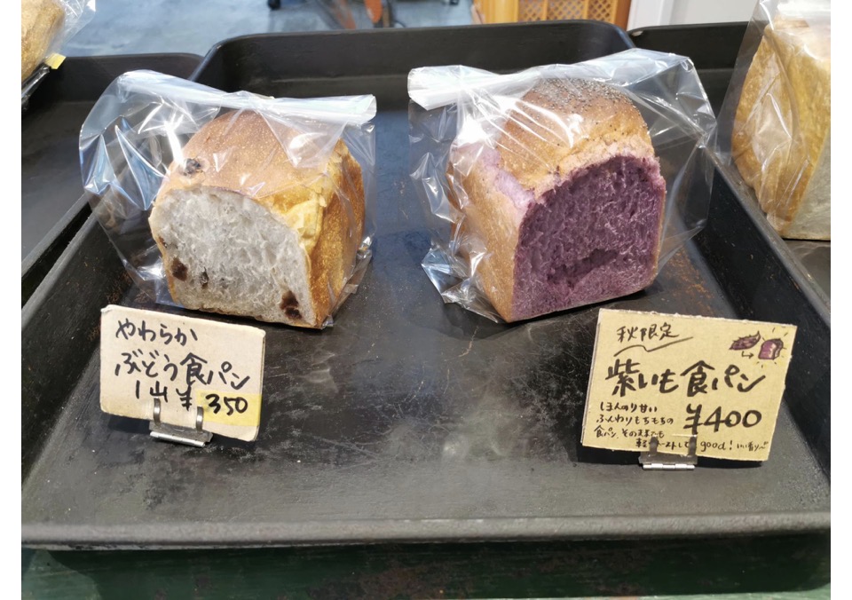 秋限定の紅いも食パンなど、季節のパンも揃えています。