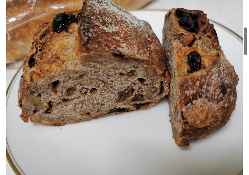 こちらは、今回購入したくるみとレーズンのカンパーニュのパン。