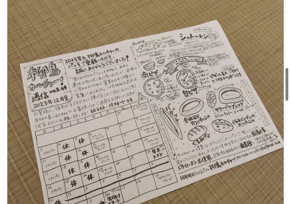 パンの特徴や、営業日などが書かれており、愛情たっぷりな柳島カルチャー通信は見ていてほっこりしますね。